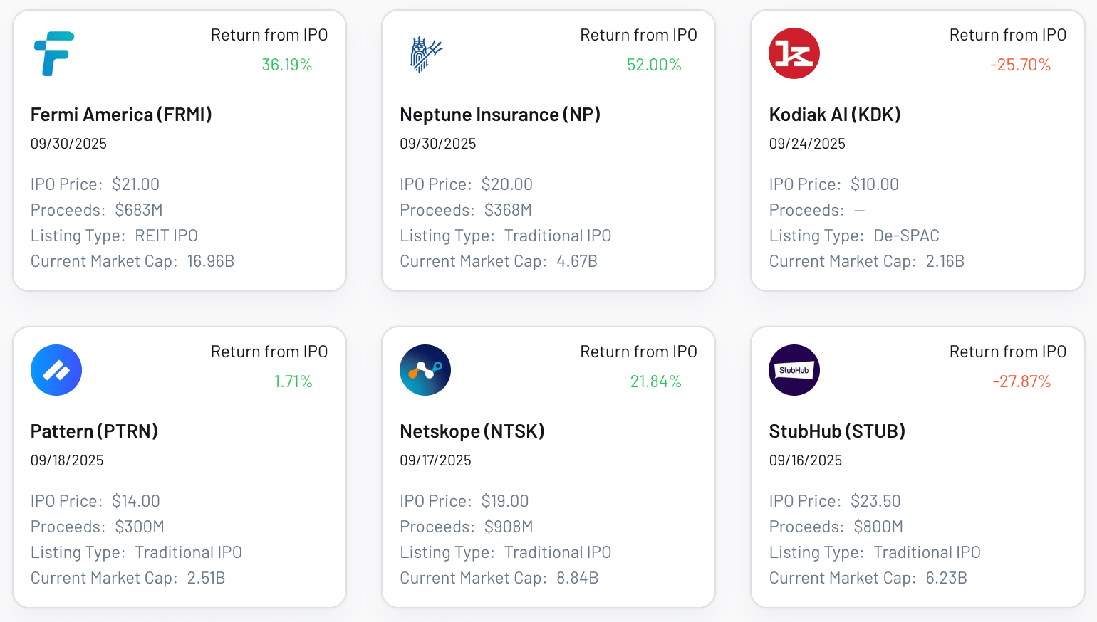 Fermi America (FRMI 36% Wkly, $16.95B MC): Fermi (FRMI), a next-generation electric grids and AI-driven energy infrastructure firm -founded by Rick Perry, priced its $650 million IPO at $21 per share. Est. market cap at IPO of $11.86 billion. Lead Left underwriter: UBS Investment Bank.