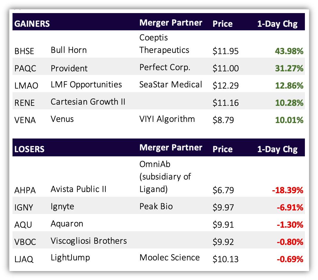 Please find a sample Morning Update newsletter below. This premium newsletter, covering all of the key SPAC action, is sent to subscribers each trading day before the market opens.