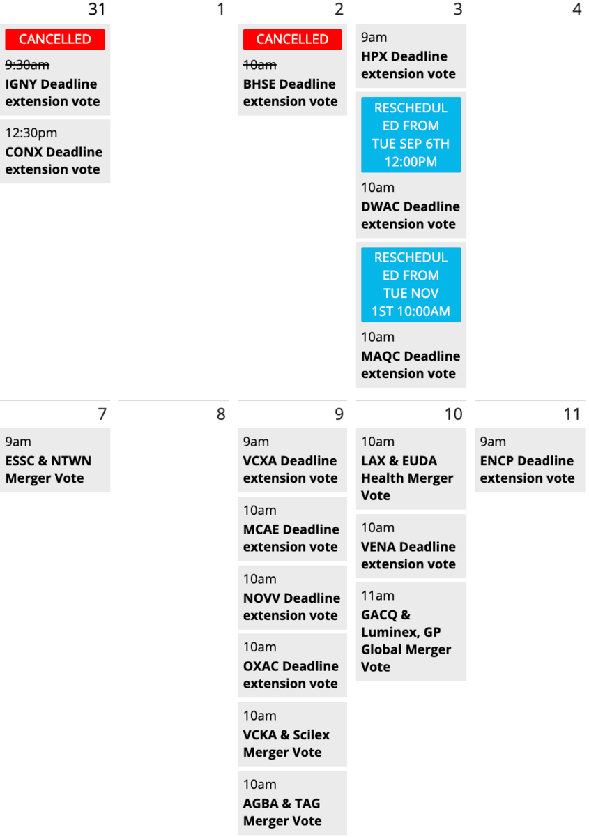 DISCLAIMER: The information provided in this newsletter is for your convenience only and is not intended to be treated as financial, investment, tax, or other advice. SPAC Track and its parent, CommonFi, do not make any guarantees, representations, or warranties as to, and shall have no liability for, the timeliness, truthfulness, sequence, quality, completeness, or accuracy of any of the information or data provided in this newsletter or on the SPAC Track website.
