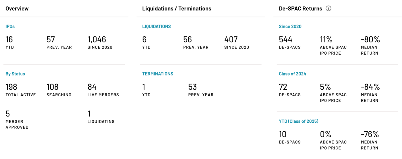 6 SPACs have liquidated in 2025 YTD and 1 is in the process of liquidating.