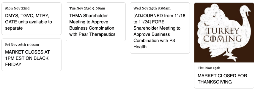 Next Week’s Announced Shareholder Meetings, Unit Splits, Warrant Redemptions, Earnings, and Expected Ticker Changes