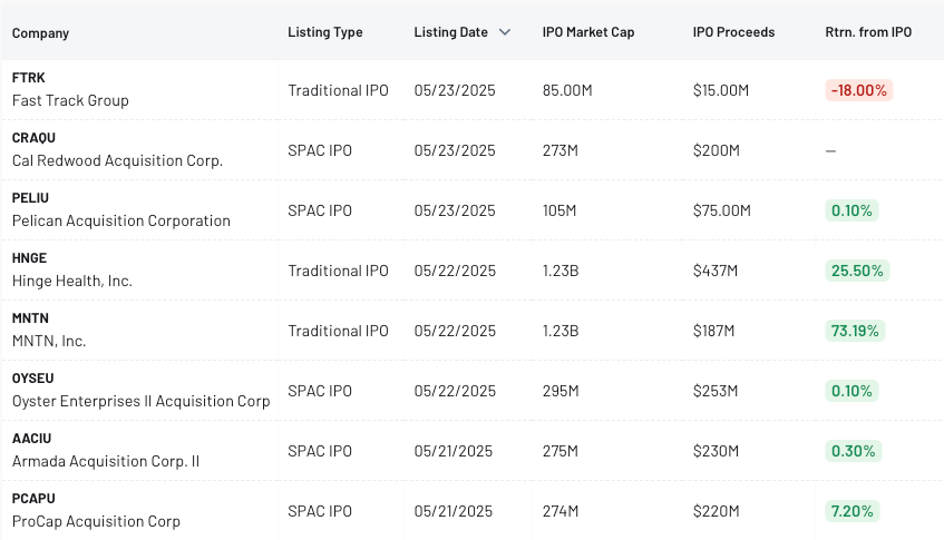 3 Traditional IPOs featuring 2 over $1 billion market cap with strong showings: MNTN (MNTN) +73.2% and Hinge Health +25.5%